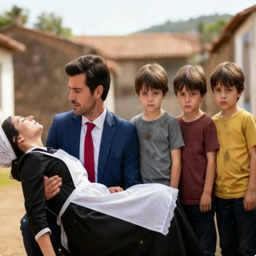 A su alrededor, tres niños pequeños lloraban desesperados, llamándola con voces rotas, pidiéndole que abriera los ojos, que se levantara, que no los dejara solos. Bento no pensó. Se arrodilló junto a ella, apoyó dos dedos en su cuello y buscó el pulso. Débil. Vivo, pero débil. Se quitó el saco azul marino y lo dobló bajo su cabeza. Luego pidió al chofer, que esperaba en el coche, que trajera la botella de agua fría que llevaba atrás.
