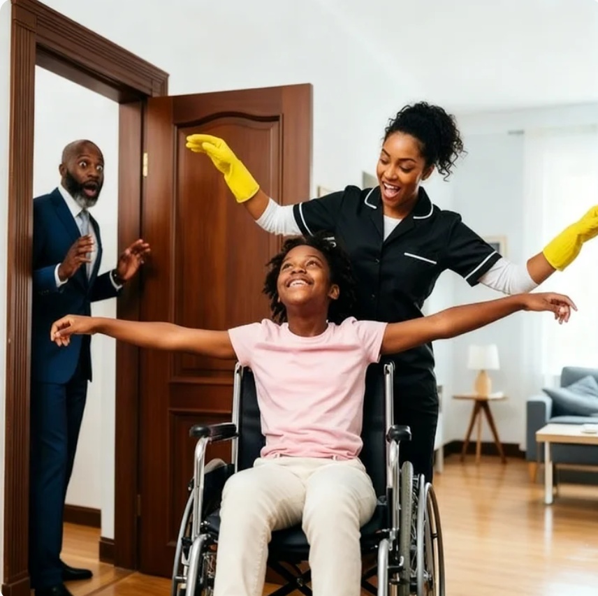 Sin pensar, la levantó con cuidado, la ayudó a sentarse en la silla de ruedas. Emily respiraba rápido, como si hubiera hecho algo prohibido, como si su propio cuerpo fuera un secreto.