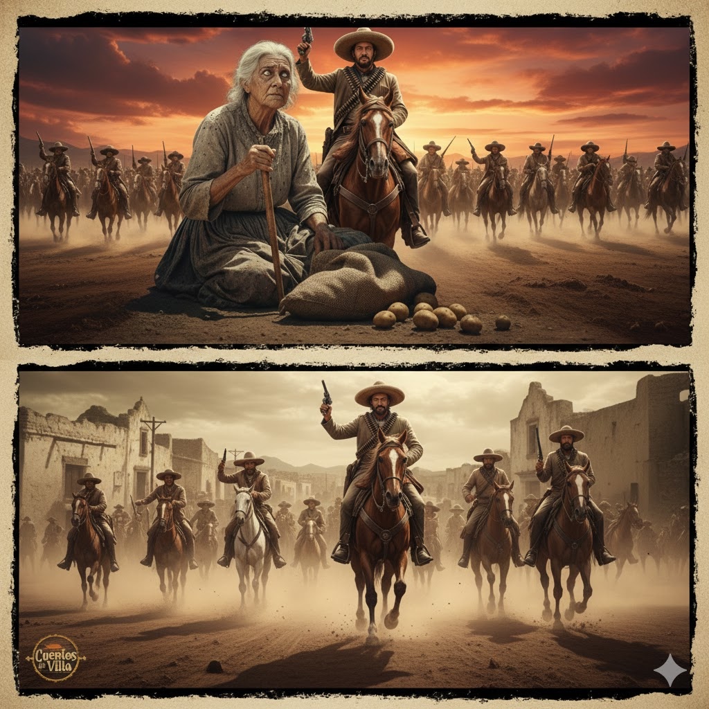 reconociendo la fuerza de la ética de Villa. Villa se detuvo frente a la anciana y dijo con voz firme, “Que quede