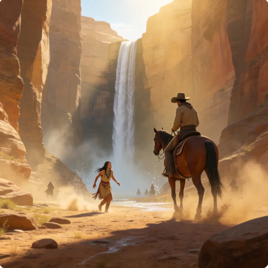 En lo profundo del cañón, una mujer apache huye herida hasta una cascada secreta.