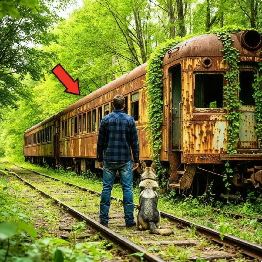 Estaba de pie frente a un viejo vagón de tren oxidado.