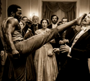 El capitán de la guardia, un hombre entrenado para someter por el miedo, yacía en el suelo con los ojos en blanco, noqueado por un solo movimiento exacto. En el centro de ese salón lujoso, Bento no parecía un esclavo rebelde. Parecía un verdugo que acababa de leer un frase. El silencio que siguió fue Lleno sólo por el sonido de la respiración.