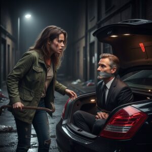 Diego le contó en voz baja que había sido secuestrado tres días antes. Los secuestradores querían un rescate de 50 millones de euros, pero algo había salido mal y habían planeado matarlo. Carmen sintió un escalofrío. Debía sacarlo de allí. Cuando finalmente lo liberó, sus piernas no lo sostenían. Ella lo ayudó a salir del maletero y lo sentó en su coche, un viejo Seat Ibiza. La única opción segura que tenía era llevarlo a su pequeño apartamento en el barrio de Vallecas. Durante el viaje, Diego le preguntó por qué lo estaba ayudando, y ella respondió simplemente que era lo correcto.