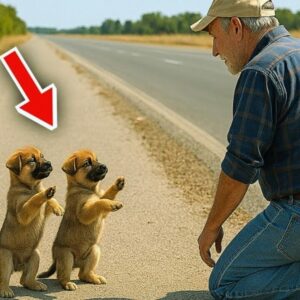 No huía de nada, solo estaba cansado de quedarse quieto. Ese día no esperaba nada fuera de lo común. La carretera era recta y silenciosa, rodeada de pasto alto que se mecía con la brisa. Pero al girar en una curva cerca de un viejo sembradío de maíz, algo extraño lo hizo frenar de golpe. En medio del asfalto había dos cachorros diminutos de pastor alemán, parados sobre sus patas traseras como pequeños soldados, con las patitas delanteras levantadas en una súplica muda y desesperada.