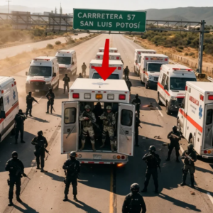El CNG detuvo convoy de nueve ambulancias, todas llevaban fuerzas especiales a operativo secreto. Son las 2:14 de la tarde del jueves 14 de agosto de 2025. El termómetro marca 38º bajo el sol implacable de los Altos de Jalisco. El polvo se levanta en nubes densas sobre la carretera estatal 80 asfixiando la vista.