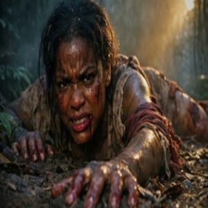 Tenía que continuar. Detenerse significaba morir allí mismo, convertirse en festín para los buitres antes de que el sol volviera a nacer. Su pierna izquierda colgaba en un ángulo antinatural, grotesco, quebrada en al menos dos lugares donde la pesada madera había impactado con furia. Un fragmento de hueso perforaba la piel oscura, brillando con una blancura obscena entre la sangre y el músculo desgarrado. Cada centímetro que avanzaba enviaba ondas de agonía eléctrica por su columna vertebral, pero ella continuaba arrastrándose, clavando los codos en la tierra, usando su pierna sana para impulsarse a través de la densa maleza.