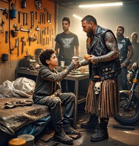 Los demás bikers empezaron a notarme: el chamaco delgado que barría y acomodaba herramientas. Parecían rudos —chaquetas de cuero, parches de calaveras, motos que rugían— pero siempre me traían algo de comer.