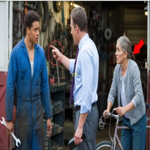 Era solo una anciana con una bicicleta rota, temblando de frío. El mecánico Jake Miller la vio llorando al borde de la carretera y le ofreció ayuda. Su jefe le gritó: “¡Ella no es una clienta que paga! ¡Vuelve al trabajo!”. Jake arregló la bicicleta de todos modos. Horas después, fue despedido. A la mañana siguiente, su tranquilo vecindario se paralizó en estado de shock. Siete lujosos todoterrenos negros entraron en su calle. Motores silenciosos, ventanas polarizadas. Todos los vecinos observaban cuando una de las puertas se abrió y todo cambió para siempre.