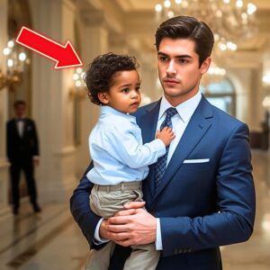 El candelabro resplandecía sobre los pulidos suelos de roble, arrojando una cálida luz dorada sobre el gran comedor. La sala enmudeció cuando un niño pequeño, de apenas seis años, se deslizó entre la multitud de trajes a medida y vestidos elegantes. Su vocecita atravesó los murmullos, clara y segura, dirigiéndose al hombre que era el centro de todo.