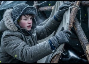 Con solo once años, la primera tormenta de nieve puso a prueba su progreso. Los vientos aullaban y las ramas cargadas de hielo amenazaban con derrumbar secciones de su estructura. Ethan se negó a ceder. Reforzó vigas, ató uniones con cuerdas y cubrió secciones vulnerables con gruesas lonas. Al amanecer, la tormenta había pasado, dejando su hogar maltrecho, pero en pie; un testamento a su resiliencia y determinación inquebrantable.