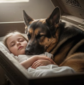 Miraron a Rex, ese guardián leal, que se había negado a dejar que la historia de su hija terminara en silencio. Más tarde, en una habitación tranquila, el ataúdía. Rex caminó hacia delante lentamente, sus pasos suaves, sus orejas bajas. trepó adentro una última vez, enroscándose junto a ella tal como lo había hecho en el funeral.