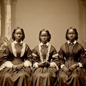La mayoría no tenían nada destacable. Retratos rígidos de familias adineradas, imágenes de casas de plantaciones, reuniones formales congeladas en plata y cristal. Entonces los dedos de Amelia se detuvieron en una fotografía en particular. Tres jóvenes negras estaban sentadas en un salón ornamentado, vestidas con vestidos de seda que habrían sido caros incluso para los estándares de las familias blancas adineradas.