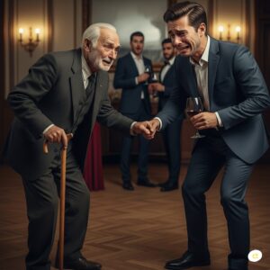 Pero la perfección del evento se rompió cuando un anciano cruzó el umbral del salón. No tenía la estatura de los otros invitados, ni la ropa costosa. Llevaba un traje viejo y arrugado, zapatos gastados por el tiempo y un bastón de madera en la mano. Su presencia fue un choque, una disonancia en la sinfonía de la elegancia.