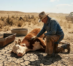 El bebedero no era más que lodo agrietado. El rancho se sentía como un ser vivo jadeando por aire. Jacob intentó cavar un pozo para enterrarlas, pero a la mitad las piernas le fallaron. Cayó de espaldas en el polvo junto a la vaca muerta, el pecho subiendo y bajando, la vista nublada. Se quedó ahí mirando el cielo vacío sin poder moverse.