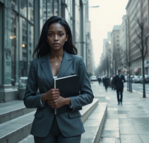 En los reflejos de las paredes de vidrio vio su propia imagen. Una mujer negra joven, bien preparada, vestida con lo mejor que tenía, pero acostumbrada a no ser la elección final. Ajustó los hombros, respiró hondo y siguió caminando. No iba a derrumbarse ahí. Al cruzar las puertas giratorias del edificio, el aire frío de la calle la golpeó de lleno.