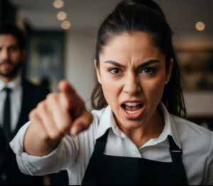 “¿Acabas de decirme que no?” “Sí”, respondió Sara, su voz ganando fuerza. “Le hice una taza nueva. Usted la derramó. Si quiere que la limpien, puede pedirlo cortésmente o puede esperar al ayudante de mesero.” “Pero no soy un perro y no soy su sirvienta. Soy una servidora. Hay una diferencia. El silencio en el restaurante era aplastante.