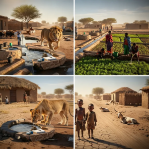 María comenzó a seguirlo, fascinada por la precisión de sus movimientos y la aparente intención detrás de cadaacción. En el tercer día, el león llevó a María un área que había sido el antiguo cementerio de la aldea, un lugar que había sido abandonado cuando la comunidad se expandió hacia el este. Allí repitió su ritual de escarvar y cuando María trajo herramientas para ayudar, descubrieron no uno, sino tres pozos artesianos más.
