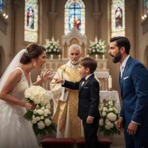 Llegó frente al altar, se giró hacia la multitud y su pequeño rostro, serio como el de un adulto, se preparó para hablar. “Perdón, tengo que decir algo importante”, dijo. El silencio fue absoluto. El sacerdote y los novios lo miraron, perplejos. Carlos se levantó, listo para disculparse, pero las palabras de Diego los detuvieron a todos. “Mi hermana no puede casarse con el Conde Alejandro porque él ya está casado. Vi los documentos en el despacho de papá. Tiene una esposa en América y dos niños”.