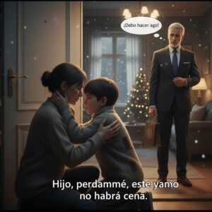 Esa simple frase destrozó su corazón. Se arrodilló frente a él, con las manos temblando, y dijo las palabras que temía más que nada: “Hijo, perdóname. Este año no hay cena”. Las lágrimas finalmente se deslizaron por sus mejillas.
