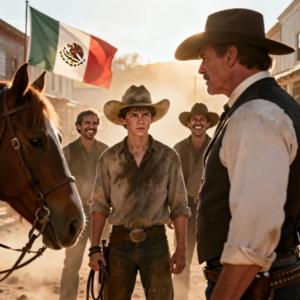 El sonido del cuero al acomodarse en la silla fue lo único que rompió el silencio. En aquel instante, el joven ranchero parecía más calmado de lo que cualquiera habría esperado después de un acto tan injusto, pero dentro de su pecho se movía una mezcla compleja de emociones que él mismo apenas alcanzaba a comprender.
