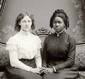 lauren Retiró con cuidado la fotografía y Lo colocó debajo de la lámpara de su escritorio. la imagen mostraba a dos mujeres jóvenes, ambas apareciendo tener 16 o 17 años, sentados uno al lado del otro lado de un adornado sati victoriano. que Inmediatamente llamó la atención que Lauren era su posicionamiento, una chica blanca y una negra Chica, sentadas juntas en un ambiente formal.