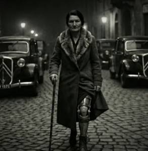 Fin de 1942. Sur de Francia, ocupada. Imagina la escena. Una noche helada bajo el toque de queda nazi. Por una calle empedrada camina una mujer sola. Tiene 36 años. Lleva un abrigo oscuro, un pañuelo en la cabeza y se apoya en un bastón de madera. Cada paso suena irregular. Tac golpe. Tac golpe.