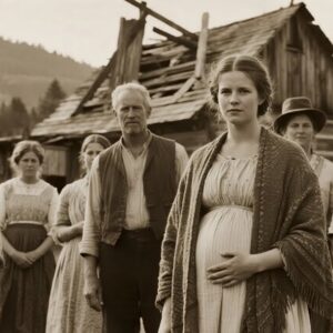 Dentro, Morrison encontró a Mercy Harmon acurrucada junto al fuego. Su vientre estaba hinchado por un embarazo avanzado y sus labios aún azules por la hipotermia. El vestido de la niña, roto y manchado de sangre, era un testimonio de abuso. “Traía estos harapos sangrientos cuando su padre la abandonó como ganado de desecho”, aclaró Tobias, mostrando un bulto envuelto en tela limpia. “Dijo que era una carga que ya no podía llevar y que debíamos usarla como viéramos conveniente”.