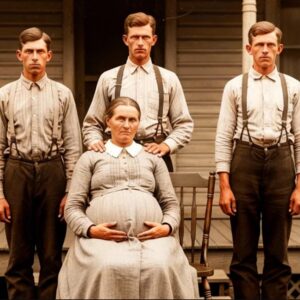 Para 1908, cinco hombres habían desaparecido en el sendero cerca de la granja Goins. Blackwood veía el patrón: forasteros, solitarios, pasando por el dominio de la viuda loca. Pero el dolor de la justicia es saber la verdad y no poder probarla. Sin cuerpos, sin testigos. Ese otoño, Blackwood subió solo a la granja. Quería mirar a la bestia a los ojos. Allí estaban: Caleb, Josiah y Benjamin. Una muralla humana. Y detrás, Eliza. Vieja, vestida de negro, emanando una calma aterradora. —Sheriff —dijo ella con voz suave pero autoritaria—, nuestra tierra no recibe extraños. A menos que tenga una orden, no cruce este umbral. Tenía razón. Blackwood tuvo que retirarse, sintiendo el olor a muerte en el aire, impotente ante la falta de pruebas y la cobardía de los vecinos que se negaban a hablar.
