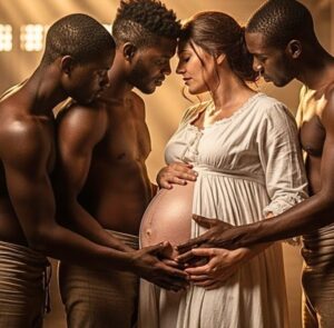 No había palabras. Chico la tomaba primero, sus manos grandes y ásperas, su boca brutal y urgente. Luego, las manos hábiles de Tonho, desabrochando su vestido por la espalda. Y Zulu, arrodillado, su boca explorando su piel. Era un baile de tres hombres marcados por el hierro de la esclavitud, amando a la mujer que legalmente los poseía, pero que en esos momentos se entregaba a ellos.