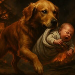 Lo último que vio fue a Rusty, con los dientes aferrados a la manta de la cuna, arrastrándola… no, arrastrando a Lily, hacia la ventana. Margaret colapsó contra el marco de la puerta, indefensa, viendo a su nieta desaparecer entre el humo y el pelaje.