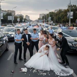 La caravana nupcial, compuesta por casi una decena de autos, avanzaba lentamente por la carretera rumbo al centro de la ciudad. El coche principal, adornado con rosas rojas y un letrero en el cofre que decía “Felicidad eterna”, transportaba al novio —elegante en un traje negro— y a la novia, radiante en su vestido blanco impecable, con una sonrisa iluminada por un toque de nerviosismo. Los vecinos se detenían a su paso para sonreír y dar sus bendiciones; algunos niños arrojaban pétalos de papel sobre el camino. Nadie sospechaba que, en cuestión de minutos, aquella alegría se rompería en mil pedazos por una verdad espantosa.