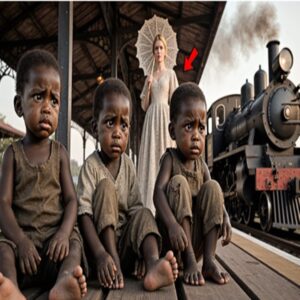 Sin embargo, el destino tenía otros planes. Sus ojos verdes, acostumbrados a la opulencia, se posaron sobre tres pequeñas figuras encogidas junto a los rieles, bajo un sol inclemente que derretía la tarde. Eran tres niños negros. La mayor, una niña que no tendría más de siete años, abrazaba protectoramente a dos niños menores, gemelos al parecer, ambos con los vientres hinchados por la hambruna. Vestían harapos que apenas cubrían sus cuerpos esqueléticos y mantenían la vista fija en el horizonte, hacia donde el tren había partido, como si esperaran un milagro que los viniera a buscar.