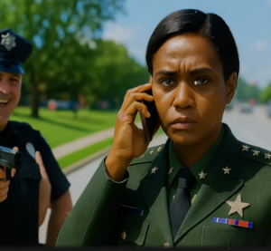 Perdón”, respondió con voz firme, sin alzar el tono. “¿Cuál es el problema, oficial?” “El problema es que estás en un auto que no te pertenece, vestida como si jugaras a la soldadita.” Intervino el oficial Henkins, riendo. Dio una vuelta al vehículo fingiendo inspección. “Placas del Pentágono, ¿quién te las dio? Tu proxeneta.