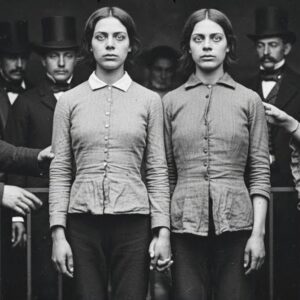 Allí comenzó su infierno. Fueron sometidos a exámenes médicos humillantes por el Dr. Vargas, quien los catalogó como “especímenes fascinantes”. Don Sebastián organizó veladas exclusivas. Vestidos con ropas exóticas diseñadas para acentuar su ambigüedad, los gemelos eran presentados sobre una plataforma giratoria ante la aristocracia.
