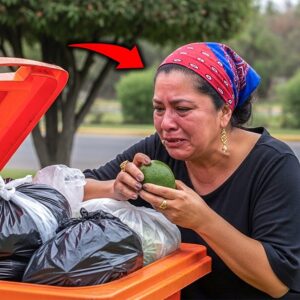 Pero la sorpresa fue suya. Un golpe al estómago que lo dejó sin aliento, con un eco frío en el pecho. A pocos metros de la entrada de la casa de la vecina, junto al contenedor de basura naranja, estaba ella. Doña Elena, la mujer que conoció la miseria para darle a él la oportunidad de conocer el éxito, estaba de rodillas. Su figura, siempre digna, se veía ahora encorvada, con la cabeza casi metida dentro del cubo de basura. No estaba buscando algo en particular; estaba sacando bolsas negras anudadas, abriéndolas con prisa desesperada.