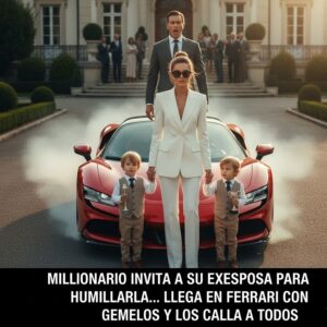 Alejandro Moreno pensó que ese día sería su triunfo final. El magnate inmobiliario más arrogante de Madrid había organizado la boda más costosa del año con la joven modelo Carmen, y había invitado deliberadamente a su exesposa Elena para humillarla delante de todos. Quería que viera lo rico y poderoso que se había vuelto después de abandonarla cinco años antes con sus gemelos, entonces de apenas 2 años. Pero cuando un Ferrari rojo se detuvo frente a la finca y bajaron Elena en un vestido amarillo que la hacía brillar, seguida de sus hijos convertidos en pequeños príncipes, Alejandro sintió que el mundo se le venía abajo. Porque esa mujer que había abandonado, creyéndola una perdedora, se había convertido en la empresaria más respetada de España. Y los gemelos que él se había negado a reconocer, eran ahora los herederos de un imperio aún más grande que el suyo.