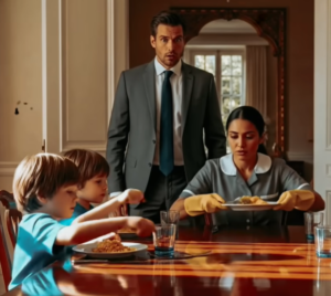 Juan permaneció escondido en las sombras del pasillo. Su corazón latía con fuerza en su pecho. ¿Quiénes eran estos niños? ¿Por qué estaban aquí? ¿Y por qué María los trataba como si fueran suyos? se acercó más, entornando los ojos para ver sus rostros con mayor claridad. Fue entonces cuando lo notó, la forma de sus narices, la curva de sus sonrisas, la manera en que uno de los niños sostenía su tenedor, delicada y elegante, incluso a tan corta edad.