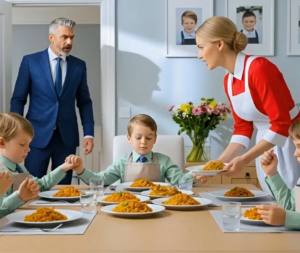 Se acercó al comedor con pasos lentos, como si temiera despertar un recuerdo. La puerta estaba entreabierta, dejando escapar vapor y voces suaves dentro. Una joven empleada llamada Lucía estaba junto a la mesa. Frente a ella, cuatro niños comían con concentración absoluta. No hablaban fuerte, no reían, devoraban cada bocado como si fuera el último.