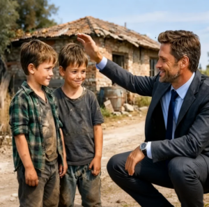 Él era un hombre que lo tenía todo, pero su cuna estaba vacía. Sergio, un millonario que pasó décadas gastando fortunas en médicos para cumplir el sueño de ser padre, nunca imaginó que su milagro no estaba en una clínica de lujo, sino en medio de una carretera de tierra olvidada por Dios, cuando bajó de su coche importado y vio a esos dos niños cubiertos de polvo frente a un barraco de ladrillos.