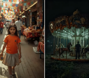 Un parque de diversiones abandonado, un lugar que alguna vez vibró con la algaravía de miles, ahora en su silencio, se convierte en un receptáculo para el duelo colectivo. La figura en el carrusel, sea una ilusión óptica o una manifestación etérea, emerge como una expresión simbólica de la memoria que se niega a morir, un eco persistente de una vida que se desvaneció demasiado pronto.