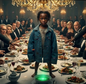Gregory Hamilton, su sobrino elegantemente vestido, que está sentado a su lado, se pone de pie abruptamente. Su rostro primero palidece y luego se pone rojo intenso. “Retiren a esta vagabunda inmediatamente”, grita con voz autoritaria. Pero la pequeña niña mantiene sus ojos fijos en la sopa. Sus fosas nasales se dilatan captando algo en el aire, algo mortal escondido bajo el rico aroma de cebollas caramelizadas y queso grullere añejado.