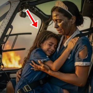 Clara estaba acurrucada en un rincón, tosiendo, con el rostro cubierto de hollín. Ana la abrazó, la envolvió en la sábana y corrió, pero el fuego bloqueó la salida principal. Miró por la ventana y vio el helicóptero de los bomberos. Una voz gritó por un altavoz: “¿Hay alguien ahí dentro?”. Ana levantó a la niña y respondió: “¡Aquí! ¡Necesito cuerdas!”.
