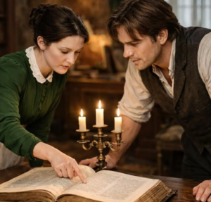 Días más tarde, el destino intervino. Me asignaron limpiar la biblioteca de nuevo. Esa tarde el señor Crawford trajo los libros de contabilidad. El duque lo despidió y para mi sorpresa, se volvió hacia mí. ¿Sabe leer? Sí, su excelencia. Entonces, mire esto. Dígame lo que ve. Me senté en el escritorio con el corazón, latiéndome con fuerza, y abrí el primer libro de contabilidad.