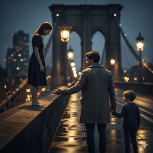 El Puente del Besos apareció entre la niebla y la lluvia como un espejismo oscuro. Era allí donde María le había dicho que sí siete años antes. Era allí donde llevaba a Elena a ver los barcos los domingos de sol. Pero esa noche, el puente tenía un aire diferente, cargado de presagios. Fue entonces cuando la vio: una figura delgada en un vestido de gala negro, completamente inadecuado para la lluvia torrencial. Tacones altos que temblaban mientras se subía a la barandilla de hierro forjado, el pelo oscuro pegado al rostro, las manos agarrándose a una farola mientras miraba el agua negra debajo.