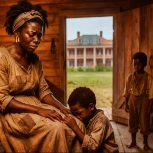 La madrugada siguiente envolvió la plantación en una neblina gris e inquietante, rota solo por el canto ocasional de un ave nocturna que se retiraba. Dina salió de la cabaña, con pasos lentos pero firmes, dirigiéndose hacia el establo donde el comerciante de esclavos ya esperaba con su carromato. Samuel estaba allí, con los ojos enrojecidos e hinchados por el llanto, aferrado a un pequeño saco de arpillera con sus escasas pertenencias. Su expresión era una mezcla devastadora de miedo puro y una resignación antinatural para un niño.