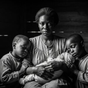 La primera noche en la plantación fue el inicio de la pesadilla. Whitmore irrumpió en el barracón de las mujeres, acompañado por tres hombres ebrios, señalando a la joven con su fusta. Esa noche, la niña murió y nació la esclava, forzada a comprender que su cuerpo ya no le pertenecía. A los dieciséis años, concibió al primero de lo que sería una larga y trágica sucesión de hijos.
