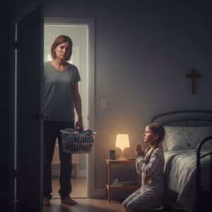 —Querido Dios —susurró, con la voz temblorosa—, por favor… dame una nueva mamá. Una que no grite todo el tiempo. Una que no llore cuando cree que estoy dormida. Solo quiero una mamá que me sonría como lo hacen las otras mamás.