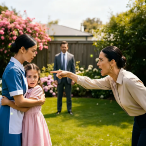 humilde, reservada, casi invisible, para él. Y cuando Alejandro se acercó, lo que vio lo dejó paralizado. Rosa estaba de rodillas frente a Lucía, con los brazos extendidos como un escudo humano, mientras la institutriz gritaba furiosa, acusando a la niña de haber roto un costoso jarrón.
