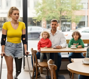 Disculpe, señor. ¿Puedo sentarme aquí? Claro, siéntate, por favor. Muchas gracias. Una joven con una prótesis de pierna entró a un café con paso firme, pero tímido, evitando llamar demasiado la atención. Las miradas se posaron en ella unos segundos y luego, como si fuera invisible, todos fingieron que sus mesas estaban llenas.