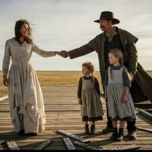 A la mañana siguiente, la pradera estaba bañada en un suave oro. Un nuevo sol ascendía lento y orgulloso sobre el horizonte, iluminando la tierra con una promesa silenciosa. El aire era frío, pero su corazón se sentía extraño, inestable, como si estuviera aprendiendo a latir de nuevo. El hombre la había llevado a su rancho después de que el tren partiera. El viaje de regreso había sido silencioso. Ahora, la casa que tenía delante parecía curtida pero fuerte. Todo en aquel lugar hablaba de lucha y supervivencia.